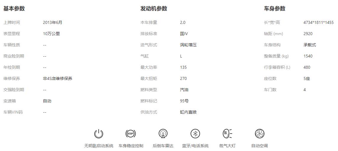 2013年6月上户,行驶10万多公里,该车定时定期保养,原车主爱惜有加。里外成色都不错。车况接受任何第三方形式检测,我们是4S店,所有车源均为认证置换车.买车有保障.欢迎实地看车验车. 本公司提供免费评估,低息按揭,旧车置换.欢迎你到实地来参考对比,小蒋热情为你服务!