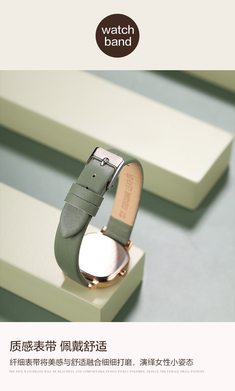表盘直径: 28mm及以下 表带材质: 皮带 功能: 计时 表带颜色: 黑色 表盘颜色: 绿色 产地: 中国 防水深度: 30M(生活防水) 适用场景: 日常、校园、送礼 流行元素: 字母 适用性别: 女士 风格: 休闲,简约,时尚 表盘形状: 圆形 表扣方式: 针扣 表壳材质: 合金 表镜材质: 矿物质玻璃 送礼对象: 送爱人,送女士 是否含防伪标识: 是 表盘直径.: 25mm 执行标准: GB/T6044-2016 送礼节日: 圣诞 商品配件: 手表*1、表盒*1、吊牌*1、保修凭证说明书*1 商品编码: ZDS11296C